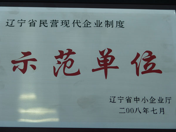 遼寧天龍藥業(yè)有限公司2008年榮獲遼寧省中小企業(yè)廳頒發(fā)的遼寧省民營(yíng)現(xiàn)代企業(yè)制度“示范單位”光榮稱(chēng)號(hào)。