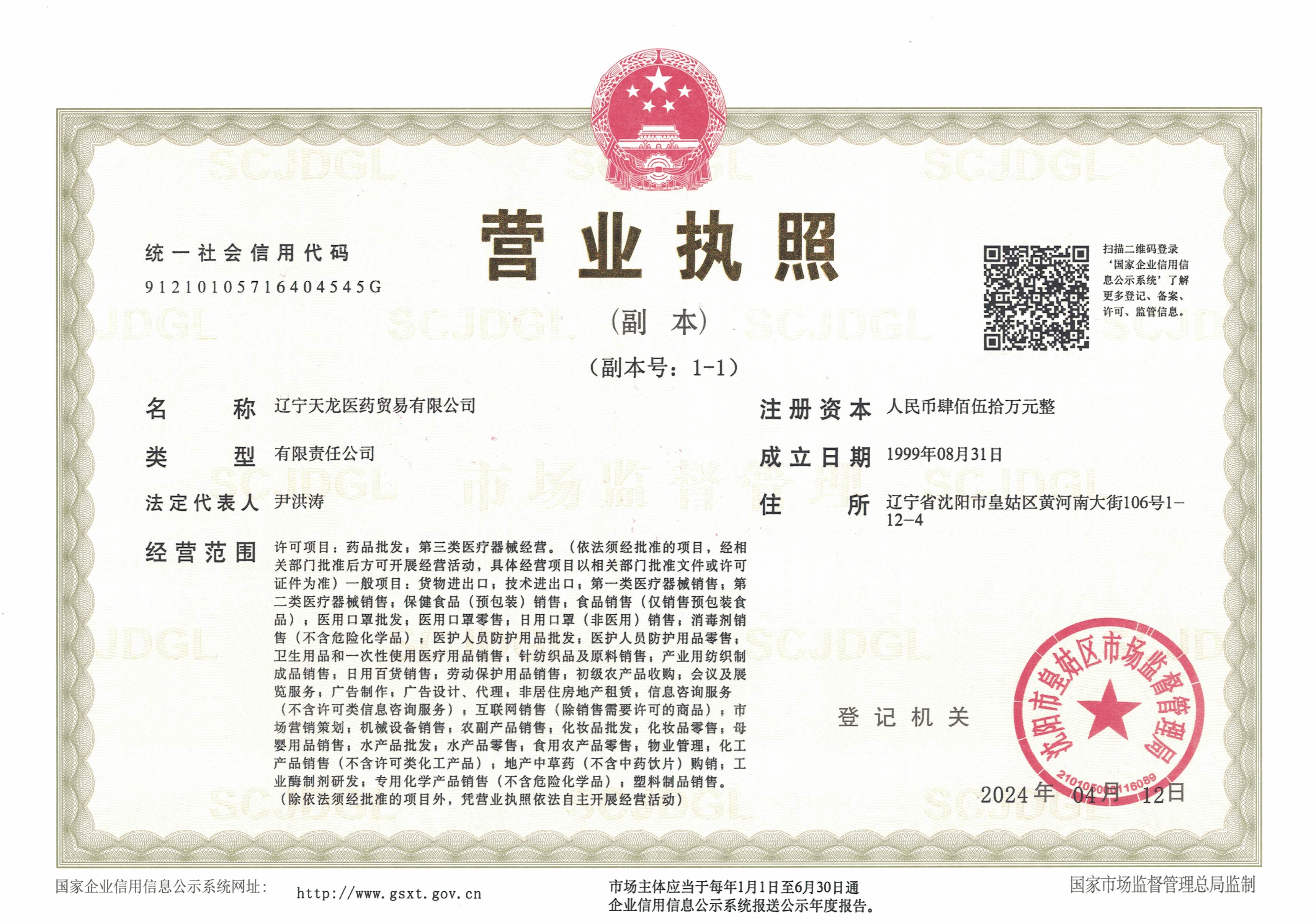 遼寧天龍醫(yī)藥貿(mào)易有限公司資質(zhì)認(rèn)證