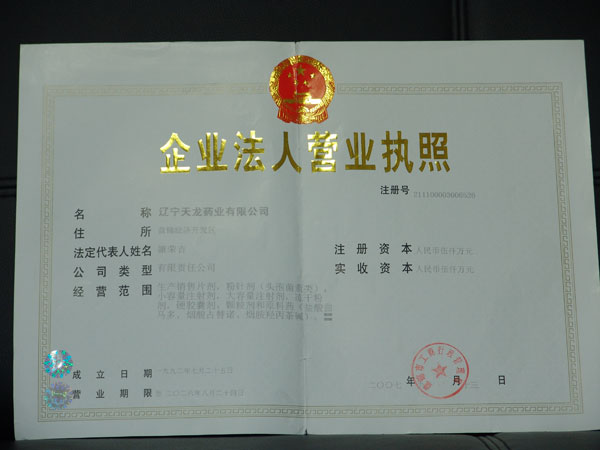 遼寧天龍藥業(yè)有限公司資質認證